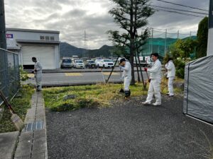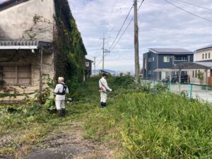 今回は、自社で管理している倉庫まわりの草刈りを中心に行いました。