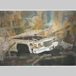 それらを自分のフィルターを通して描かれます。「いつも自分のかたわらにあった音楽や絵が刺激になり、自分の好きなモノを日本画の枠に捉われず、日本画の幅を広げたいとストリートカルチャーを描いてみたんです」と話されます。2006年京展賞を皮切りに、日展や日春展に入賞されます。