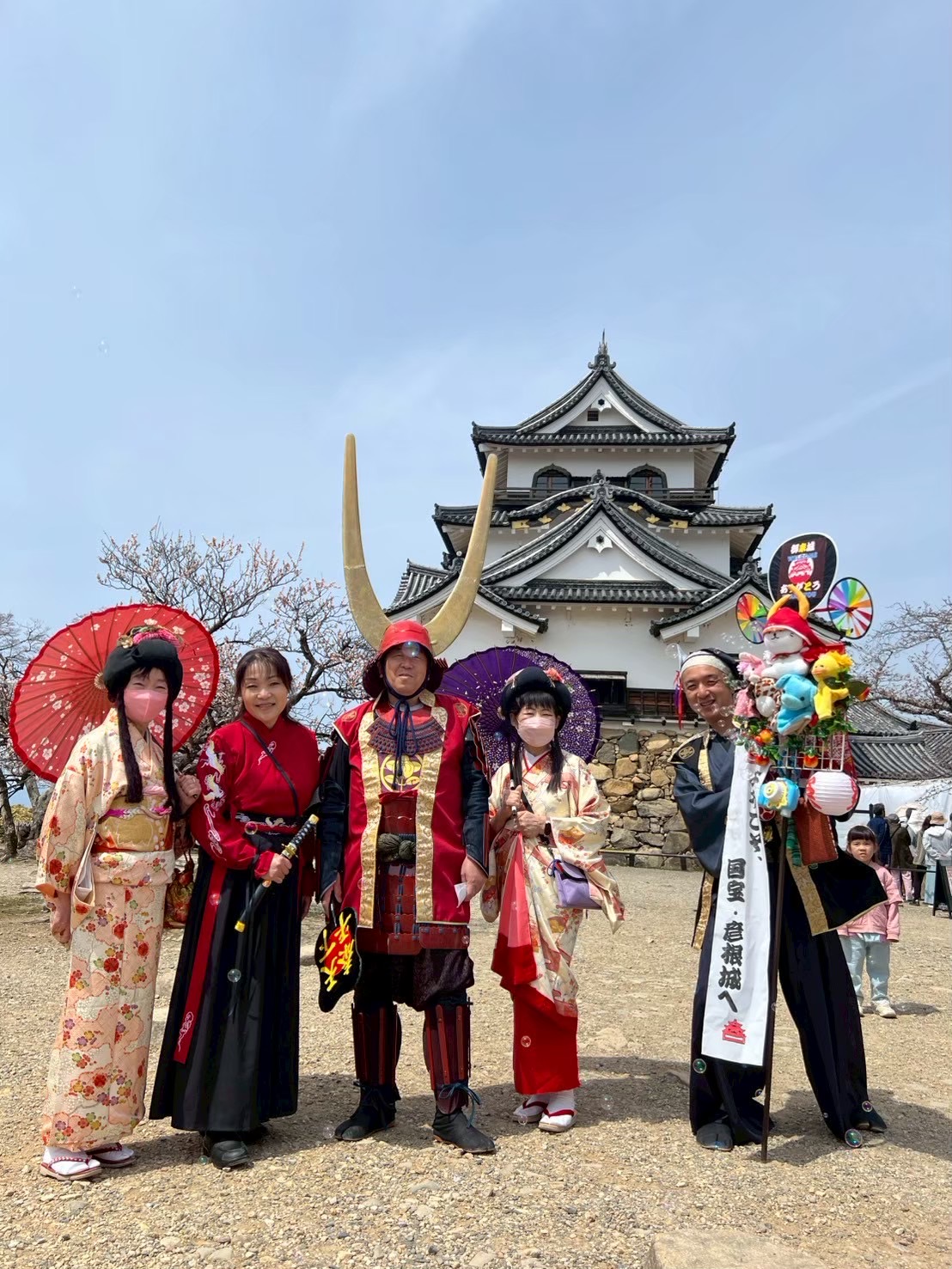全国各地の有名なお城で、武者やお姫様や忍者にふんして観光客を楽しませてくれるパフォーマーが見られますが、彦根城にもそんな皆さんがおられます。